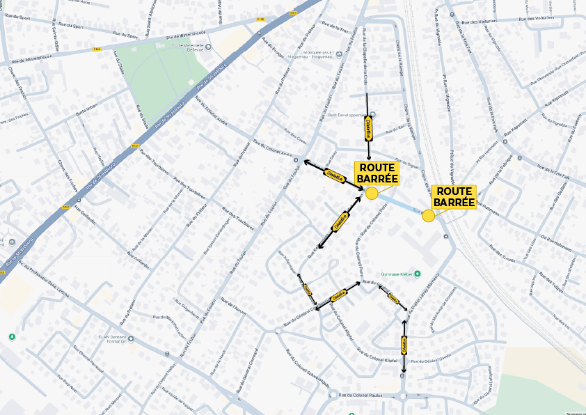 Pendant la durée de ces travaux (environ 3 à 4 semaines), la rue Kléber sera barrée à la circulation entre la rue Kellermann et la rue Chemin de la Rampe, et le stationnement sera interdit.